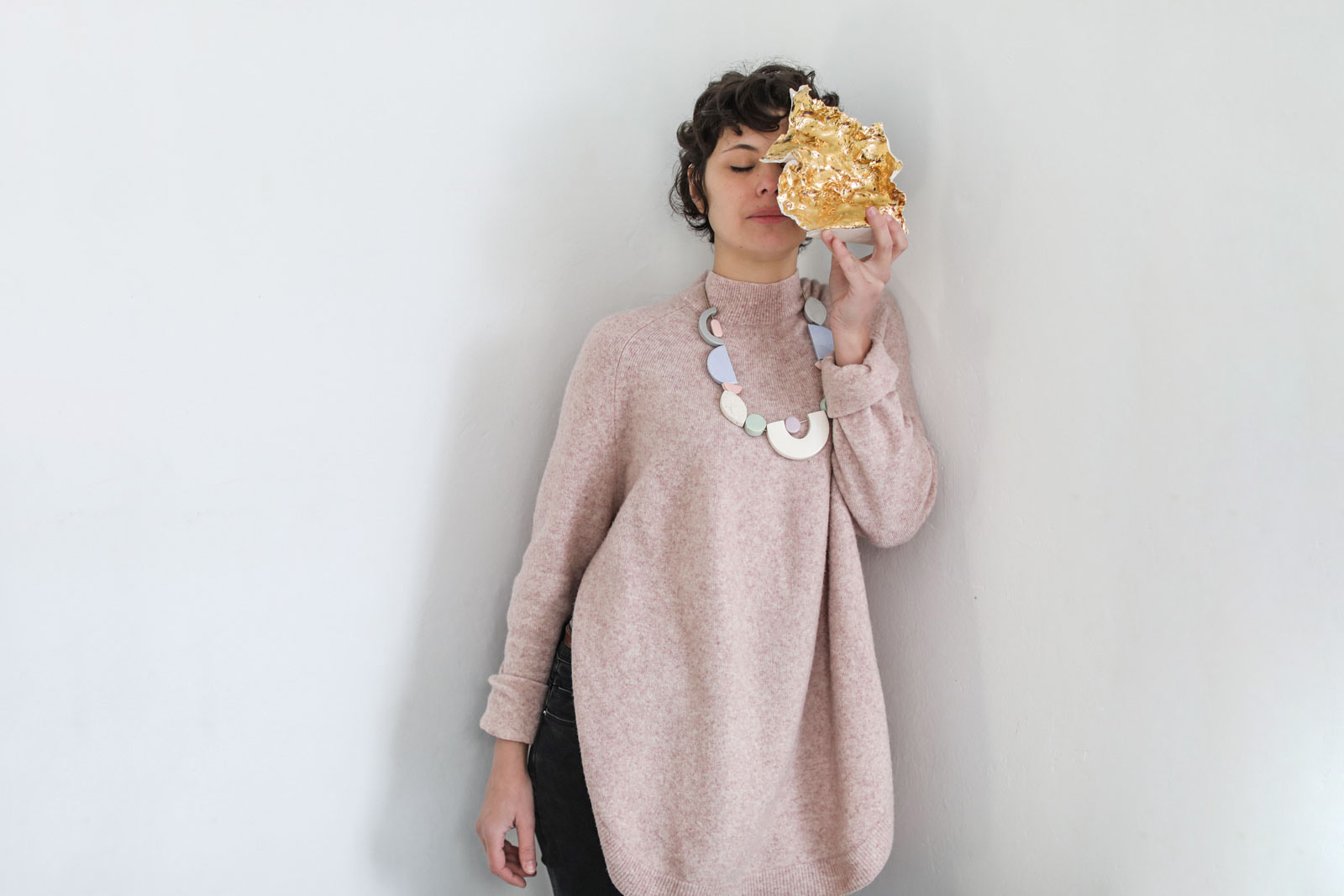 The first thing I’ve made related to jewellery was to participate in a collective exposition at Mad is mad gallery. I prepared some mobiles hanged from the roof, made with wooden sticks and geometric clay shapes. After that, I realized that those little pieces could actually work as independent accessories.