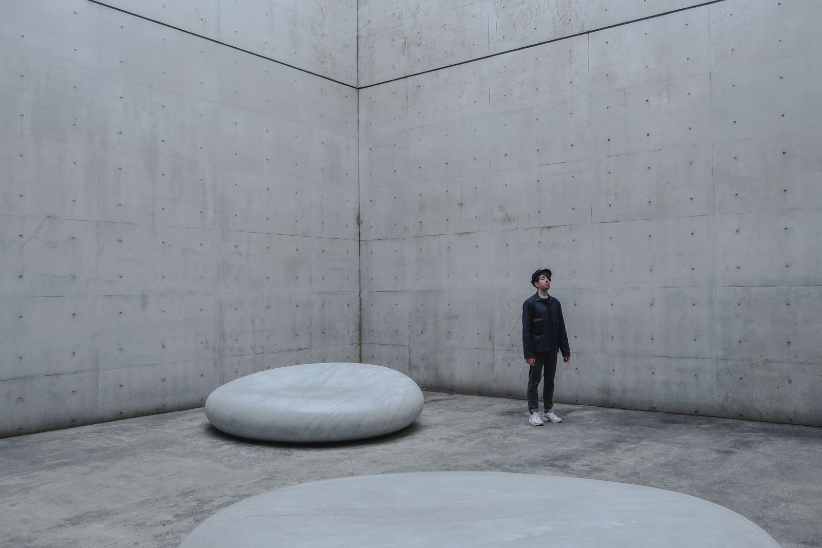 An island that mixes nature with cement, where art and air are flowing, where you can find giant pumpkins on the beach and sleep in a museum. Art Teshima’s Museum, a huge water drop in the middle of rice fields, it actually absorbs you. We keep asking ourselves if we will find a place more impressive than this. Between us, we are not sure that Naoshima and Teshima are actually of this planet